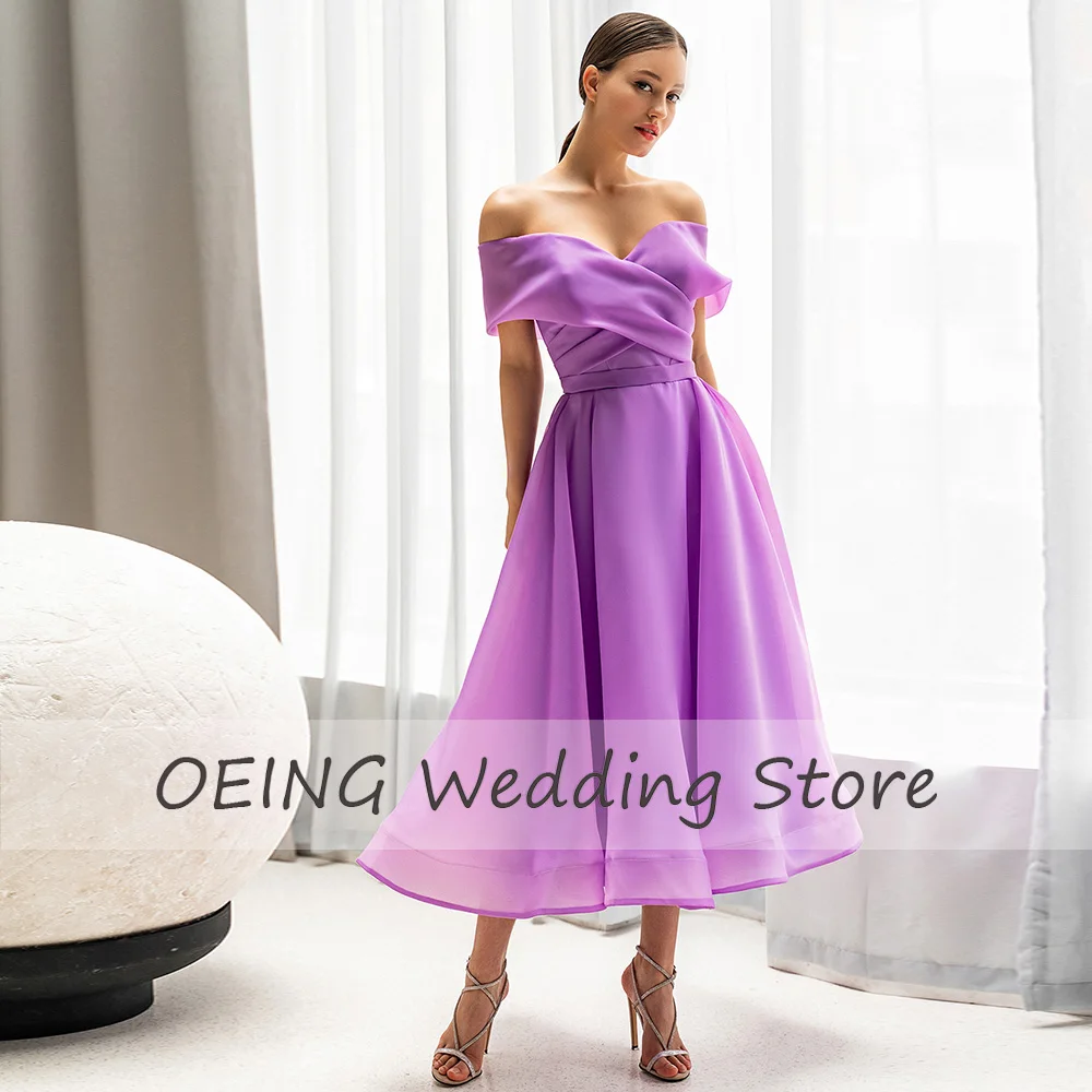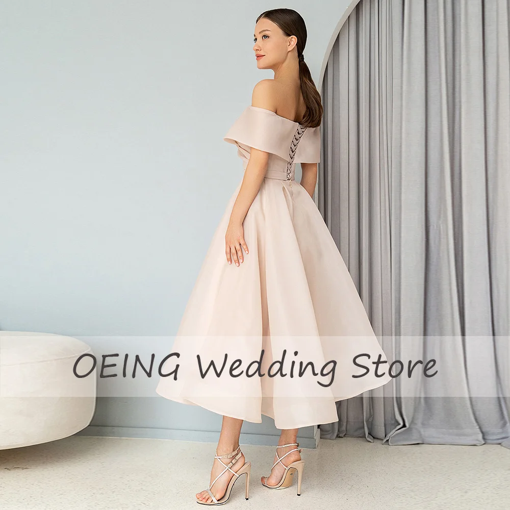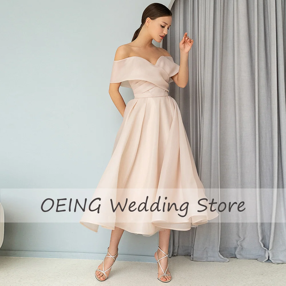 Champagne Short Bridesmaid Dress 2023 V Neck A Line Bridesmaid Gown for Wedding Off Shoulder Tea Length Midi Formal Party Dress