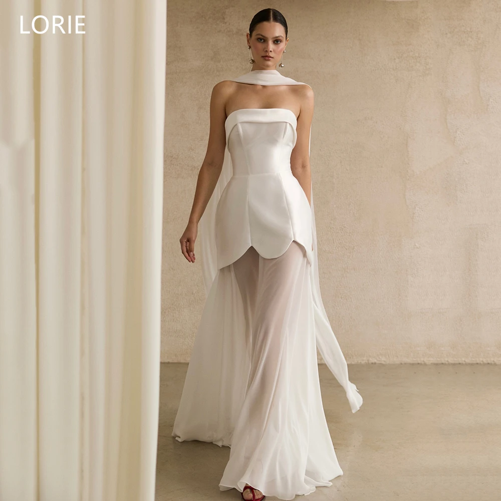 LORIE Elegant Wedding Dresses Strapless Sleeveless Bride Prom Gown Chiffon A-Line Floor-Length Bridal Gowns Customized